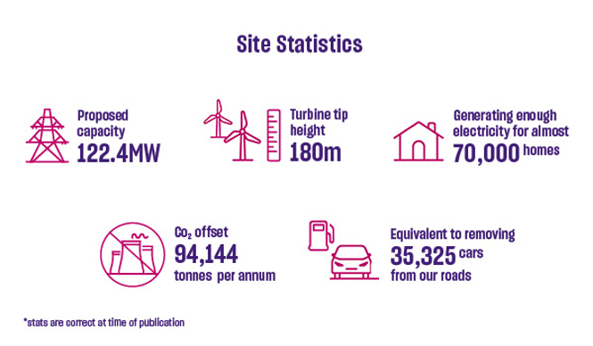 The wind farm is made up of 17 wind turbines, generating 122.4 MW of renewable energy – enough to meet the annual electricity needs of almost 70,000 Irish households.